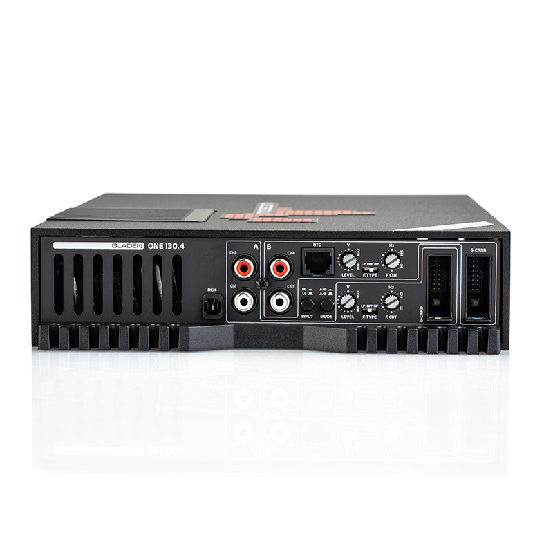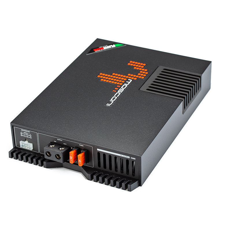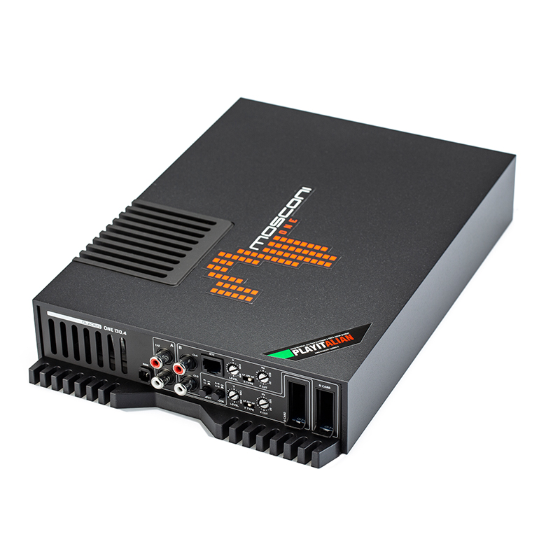 The MOSCONI ONE 130.4 is a universal 4 channel high quality amplifier in Class AB technology. It is the ideal amplifier for speaker systems and/ or medium-sized subwoofers. The ONE 130.4 is designed as a double stereo amplifier, but can also be operated in three-/ or two-channel mode. This amplifier is powerful and thanks to the analog Full Mosfet-technology has outstanding sound characteristics.