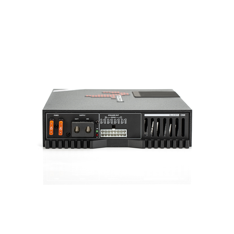 The MOSCONI ONE 90.8 DSP is a universal 8 channel high quality amplifier in Class AB technology and an integrated digital sound processor. It is the ideal amplifier for speaker systems and/ or efficient subwoofers. The digital 8 channel sound processor allows you to adjust your car hifi system perfectly via PC software. In addition to an extensive active crossover, equalizer and a delay correction, various special filters are available. For system expansion, the ONE 90.8 DSP has a processed preamplifier output. Here you can easily connect the "Line IN" of another mono or stereo amplifier.