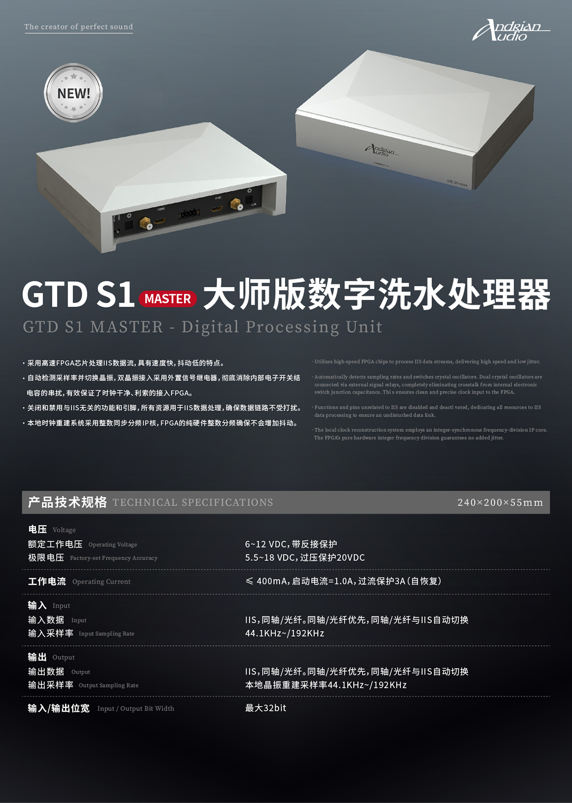 采用高速FPGA芯片处理IIS数据流,具有速度快,抖动低的特点