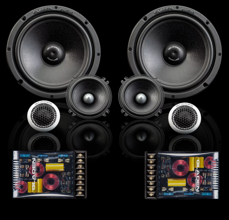 High-end system consisting of a 165 mm bass woofer, an 80mm midrange woofer and a 20 mm dome tweeter (always in pairs).