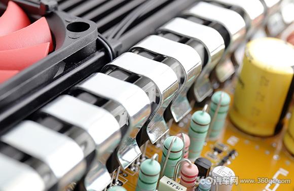 从内部规整而充满系列特征的电路设计看,大型环形线圈证明其拥有稳定高功率的供应能力,控制力有保证。PRO 2|10是全MOSFET场效应管驱动放大,AB类设计,4欧姆负荷下两声道能输出每路240W,2欧姆状态下则是每路输出360W;两路桥接下,4欧姆负荷工作则有720W的高功率输出。上半部分密布的金属散热片加上散热风扇,保持良好的工作温度,有极佳的通风散热效能。