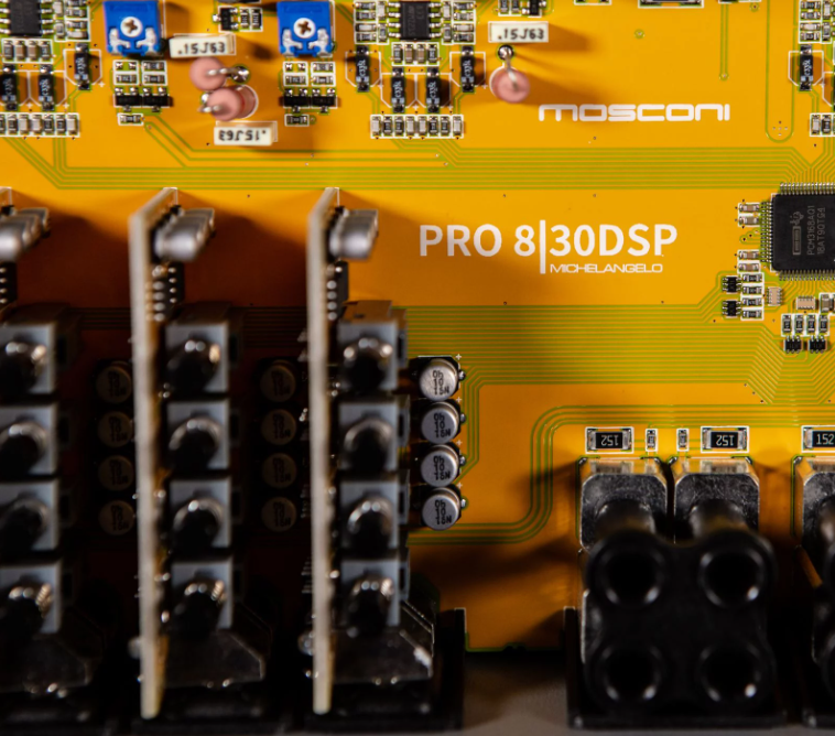 The MOSCONI PRO 8|30 DSP sets standards in the field of multi-channel high-end DSP amplifiers. With its completely analog power section in the output range, the MOSCONI PRO 8|30 DSP sets standards in terms of music reproduction and thus trumps digital amplifiers in resolution and spatial representation.