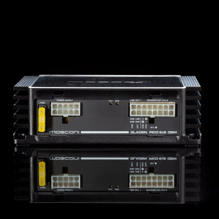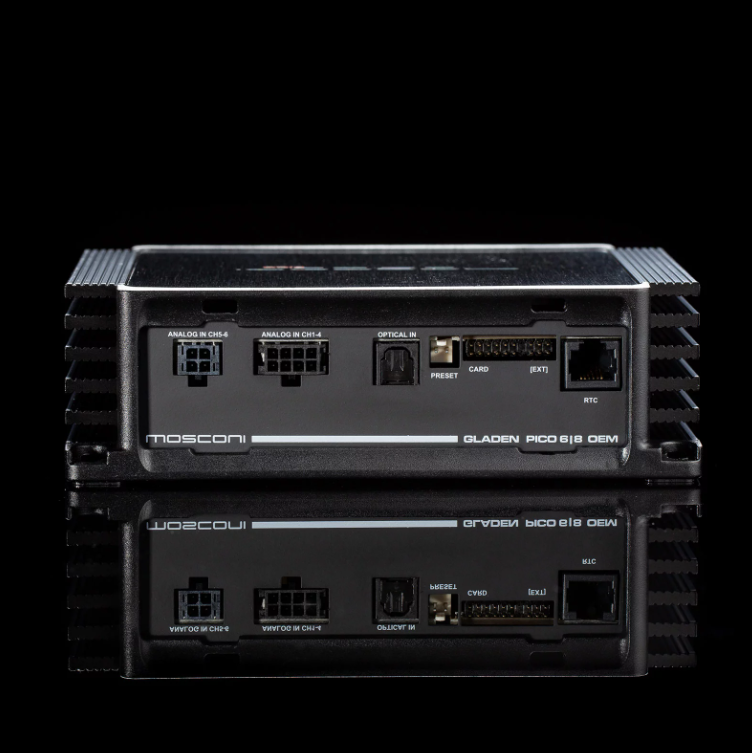 Powerful DSP amplifier optimized for factory radio use. Six analog inputs up to 30 V, flexible routing, 3 x input EQ and delay. With 4 x 50 Watts + 2 x 90 Watts ideal for active and semi-active systems, as well as classic front + rear + sub application. With two digital inputs (SP-Dif and BT+) and two processed line outs ready for the future.