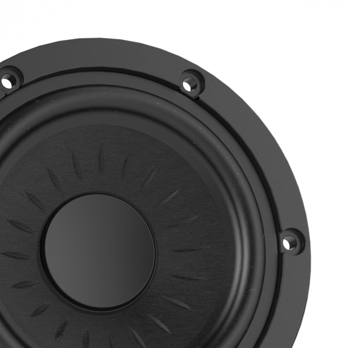 High-end 80 mm (3 inch) midrange driver with ribbed, stiffened paper diaphragm and anodized aluminum dust cap. The powerful neodymium magnet in combination with the stiffened and optimally ventilated die-cast aluminum basket result in an ectra-class midrange driver. Symmetrical stranded wire, 25 W RMS, 40 W music power handling, 4 Ohm impedance and a characteristic sound pressure of 88 dB. Manufacturing and development Made in Germany.