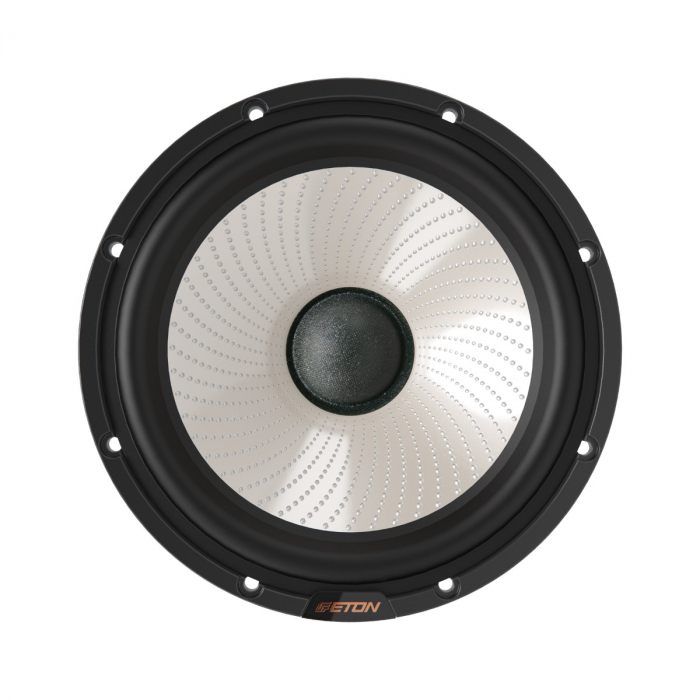 165 mm (6.5 inch) 2-way high-end system with magnesium composite diaphragm, flow-optimized aluminum die-cast basket and basket design, powerful neodymium magnet, hand-coated fabric dust cap, 28 mm magnesium Keronite tweeter with hand-coated surround, multi-vented, with asymmetrical coupling volume and RCFS technology. Resonant frequency 1W/TSP: 57/59 Hz, characteristic sound pressure 88 dB, rated power handling: 100 W RMS, 4 ohms impedance incl. CNC-machined, sandblasted aluminum surface-mount and built-in enclosures, black anodized, removable tweeter grilles. Made in Germany.